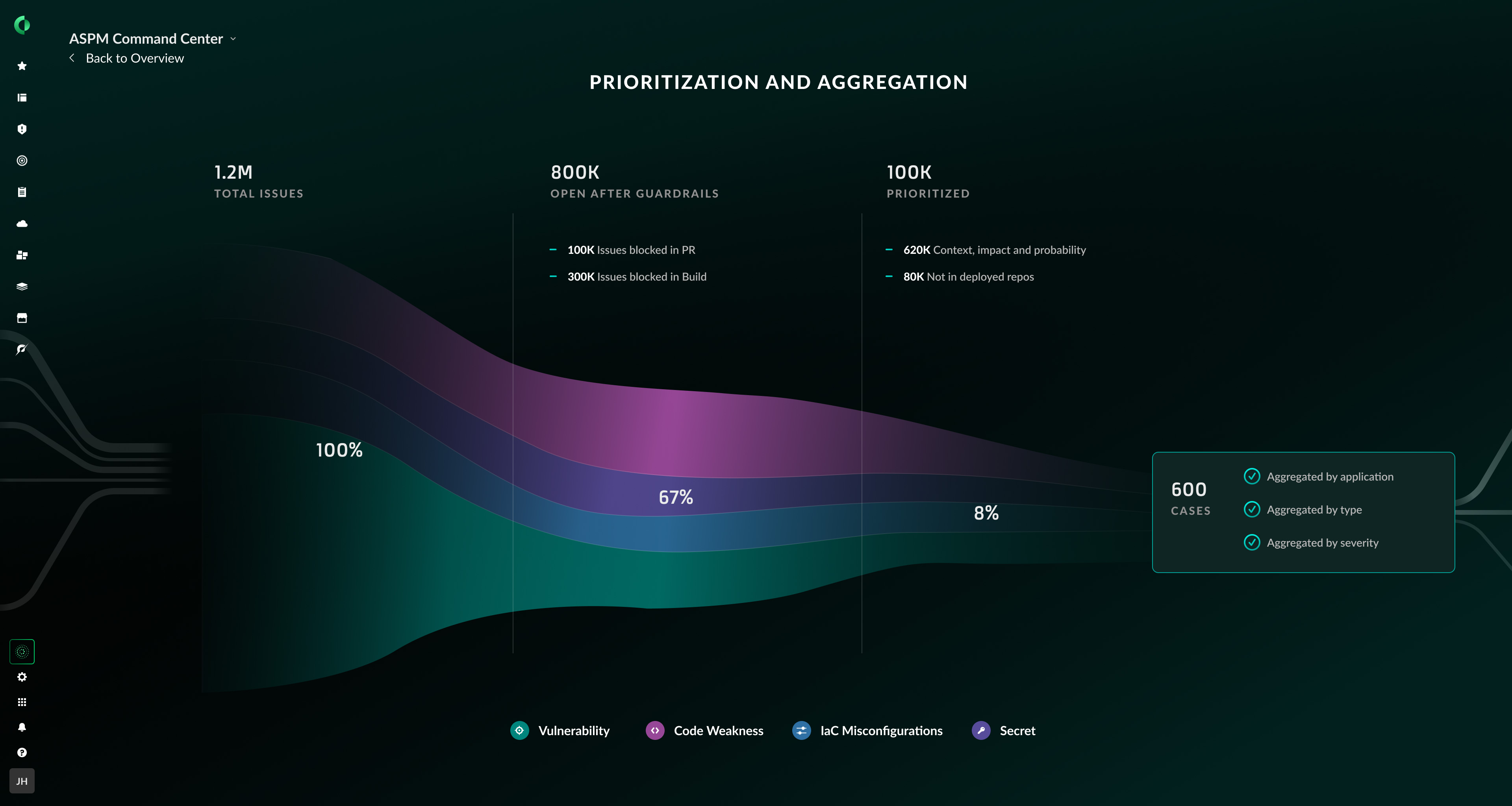 Unifique datos de escáneres nativos, hallazgos de terceros, infraestructura en la nube y tiempo de ejecución para permitir que los equipos de AppSec protejan las aplicaciones durante todo el ciclo de vida desde una única solución.
