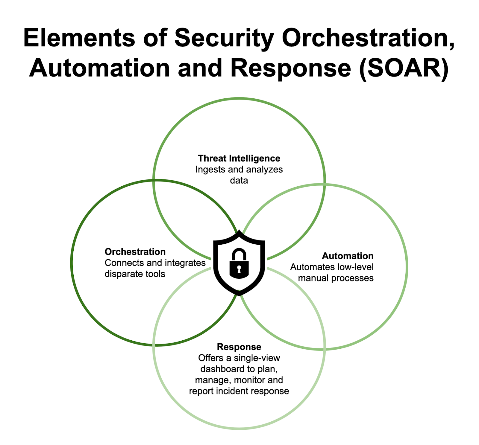 La tecnología de orquestación, automatización y respuesta de seguridad (SOAR) ayuda a coordinar, ejecutar y automatizar tareas entre varias personas y herramientas, todo ello dentro de una misma plataforma. De este modo, las organizaciones no solo logran responder con rapidez a los ciberataques, sino que además pueden observar, comprender y prevenir incidentes futuros, con lo que mejora su estrategia de seguridad general.
