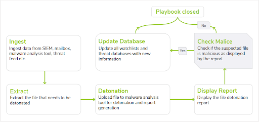 Figura 1: Libro de estrategias de SOAR de muestra para el análisis de malware