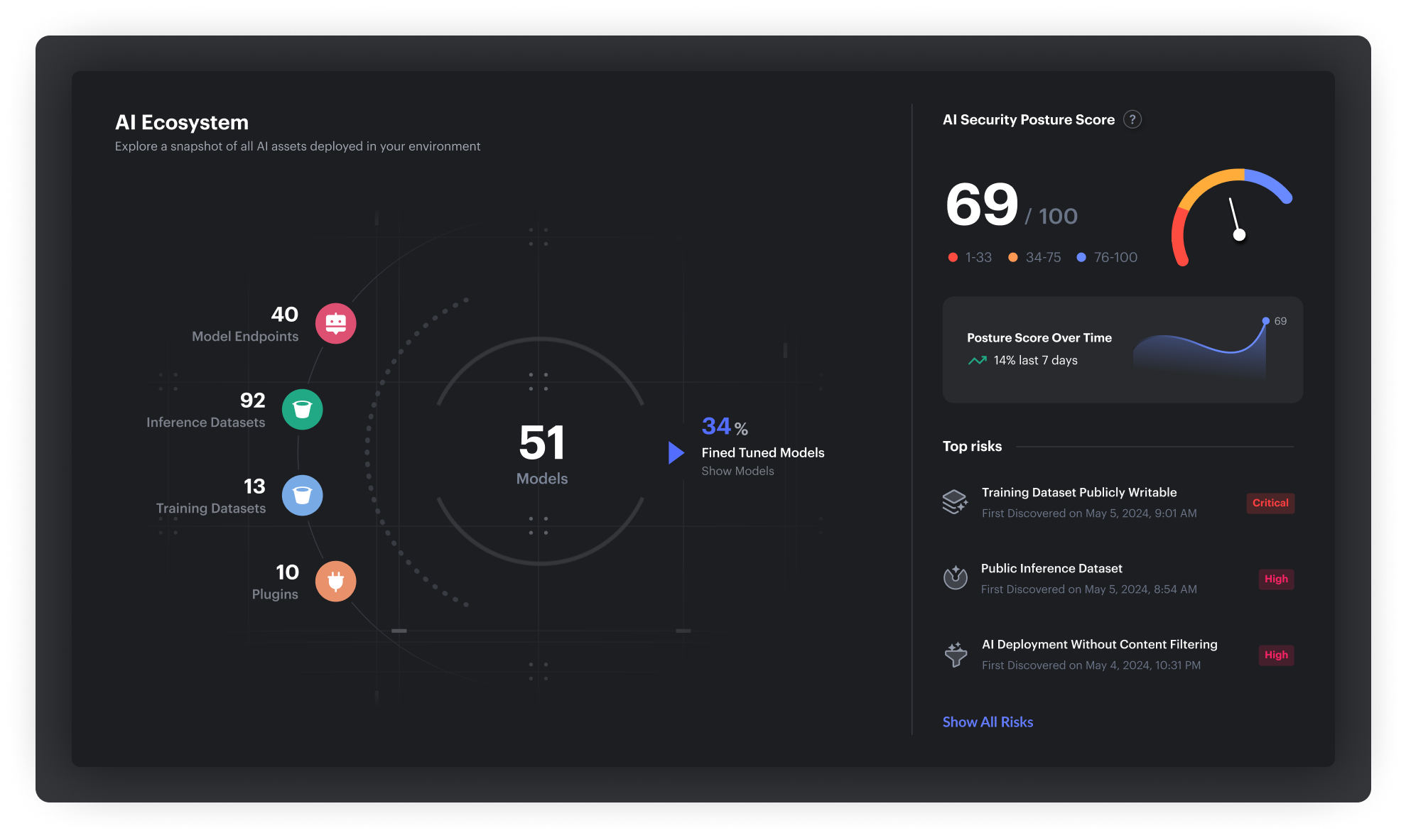 Visualice y controle mejor los modelos, la GenAI y la cadena de suministro de la IA. Bloquee los nuevos vectores de ataque antes de que lleguen a materializarse.