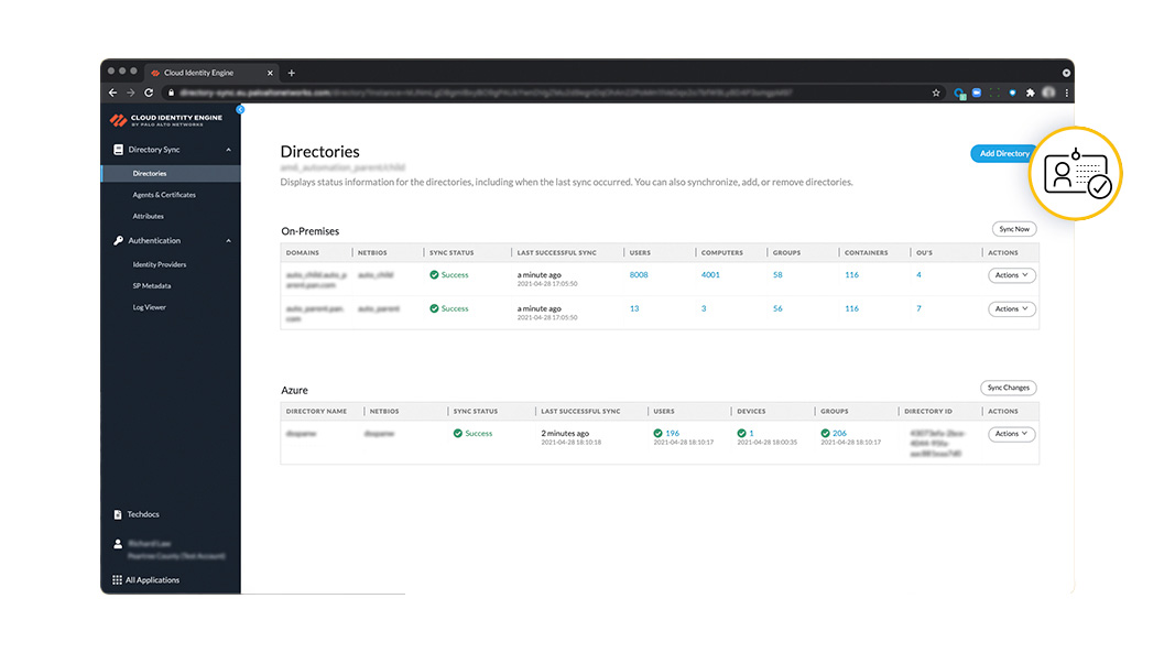 Proteja sus datos con las VPN postcuánticas PAN-OS que están basadas en estándares abiertos. Cloud Identity Engine también ayuda a añadir y sincronizar la información de los usuarios entre los proveedores de identidad, lo que permite una autenticación y autorización coherentes de los usuarios, independientemente de su ubicación y de dónde residan los almacenes de identidad de los usuarios. Todo esto se hace con una configuración mediante apuntar y hacer clic que sincroniza automáticamente la identidad en todos los proveedores de identidad.