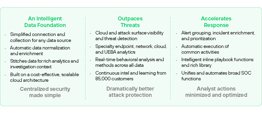 En la actualidad, las empresas híbridas generan muchísimos más datos de seguridad que hace algunos años. Aun así, muchos SOC siguen utilizando sistemas de datos aislados con una visibilidad limitada en la nube, una tecnología SIEM anticuada y procesos manuales que invitan a los atacantes a aprovechar su ventaja.